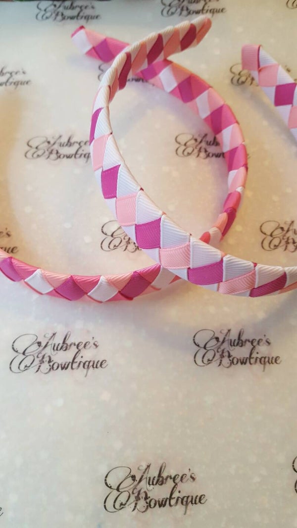 Please State when completing order what colours from pictures available not codes you would like. Up to 4 different ribbons per headband.